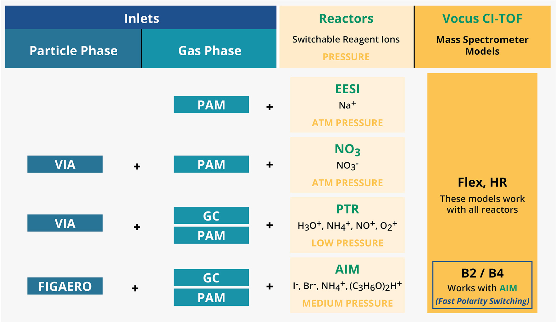 Reagent ion switching enables real-time monitoring using different reagent ions with a single reactor. Switching timescales are 50-100 ms for the Aim Reactor, as as fast as 10 s for the PTR Reactor.